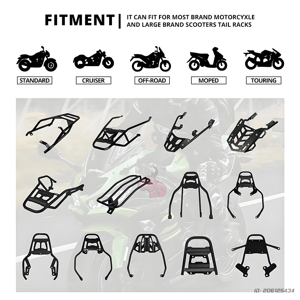 "10-second quick-release installation, compatible with 90% of motorcycles, universal adapter kit included"