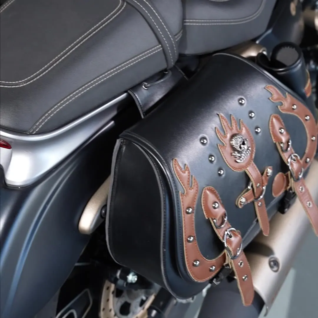Retro Fashion Black Brown Motorcycle SaddleBag Motorbike Side Bags Storage Tool Waterproof Side Bag With Cup Holder Universal