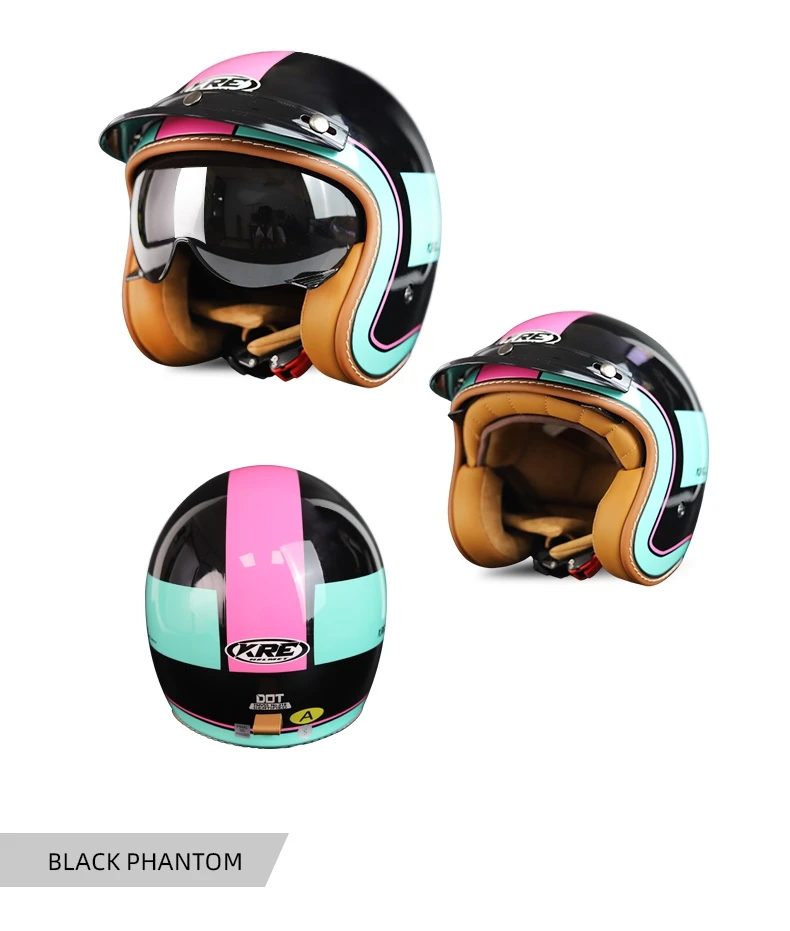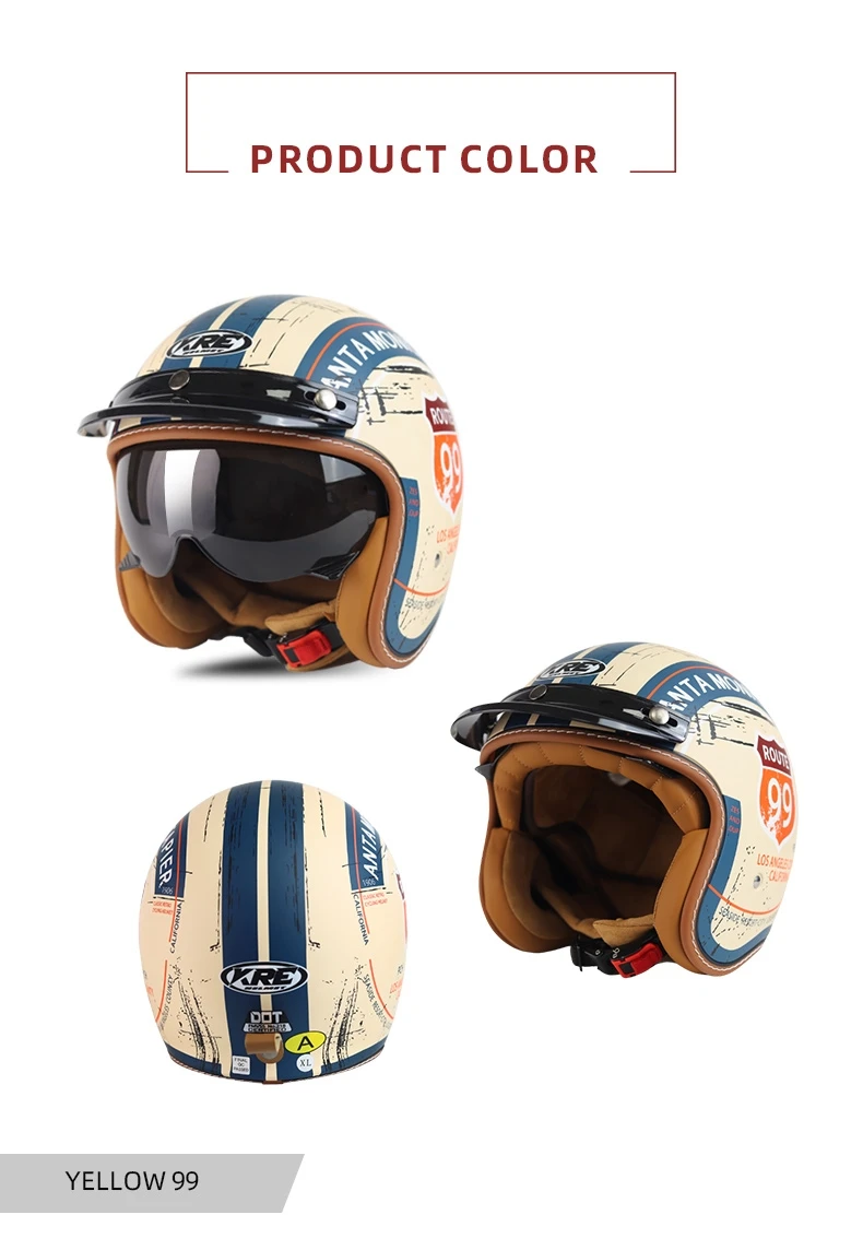 Retro Half Helmet Motorcycle Open Face Motocross 3/4 Dual Lens Half Helmet Cruise Motorbike Helmet Racing Motorcycle Accessories