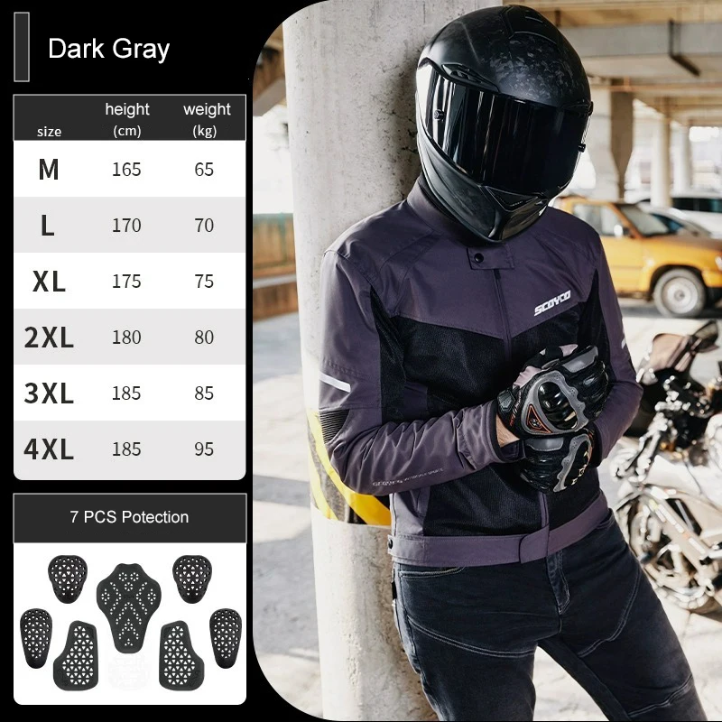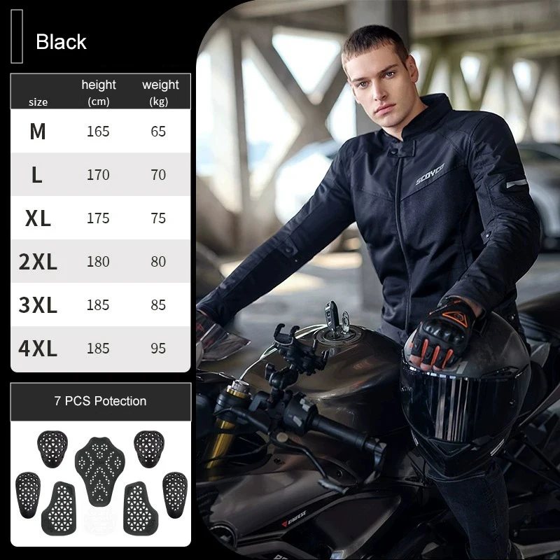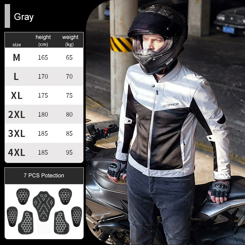 SCOYCO Summer Men Motorcycle Jacket Motocross Off-Road Jacket Motor Racing Jacket Breathable Mesh Moto Jacket Protective Gear