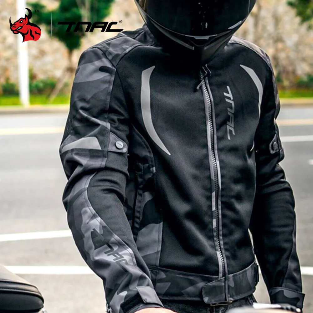 TNAC Men’s Breathable In Summer Motorcycle Jacket Motorcycle Cycling Protection Jacket Water Proof Anti-drop Jacket Size M-5XL