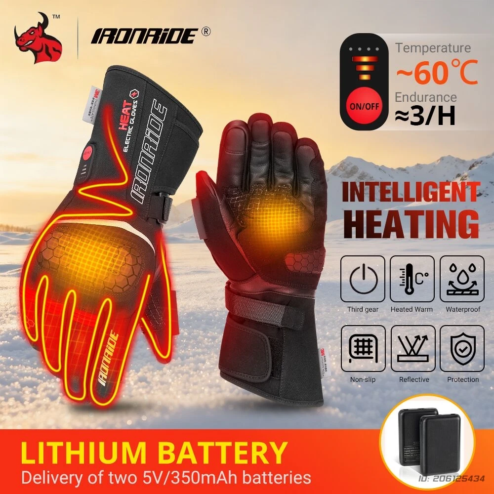 Winter Heated Motorcycle Gloves Waterproof Thermal Snow Gloves with Battery Cold Weather Heated Riding Gloves for Men Women